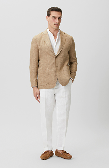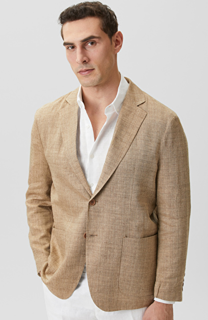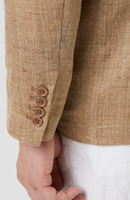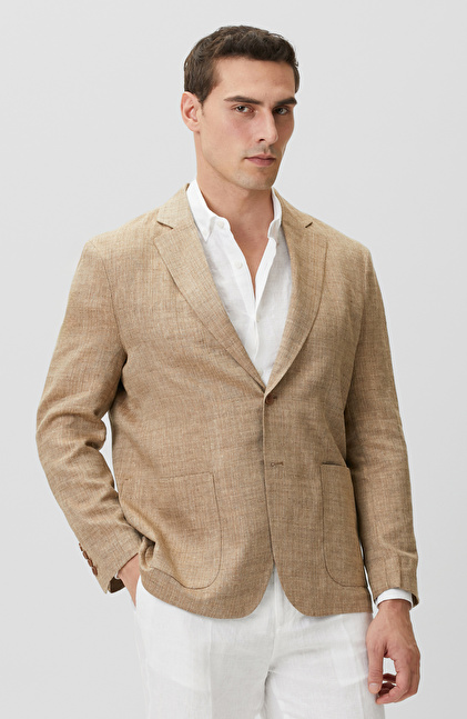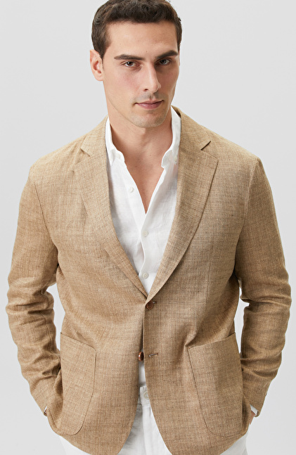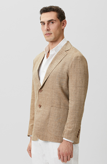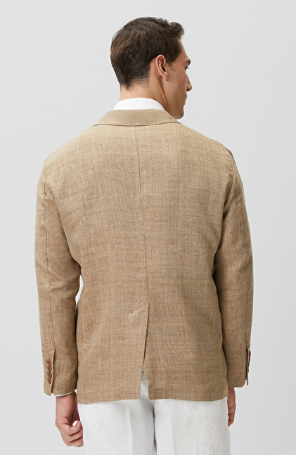Limited Bej Balıksırtı Keten Karışımlı Ceket