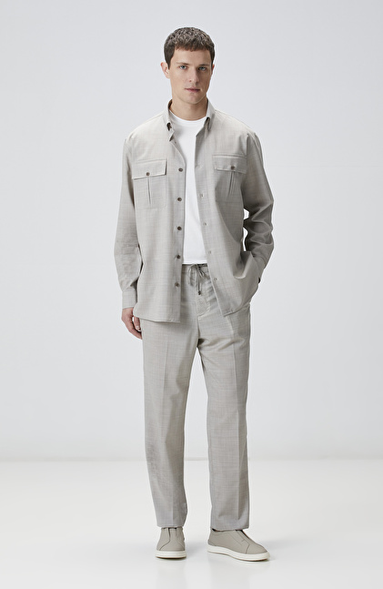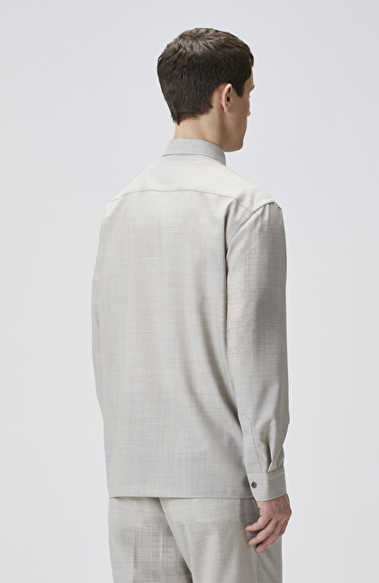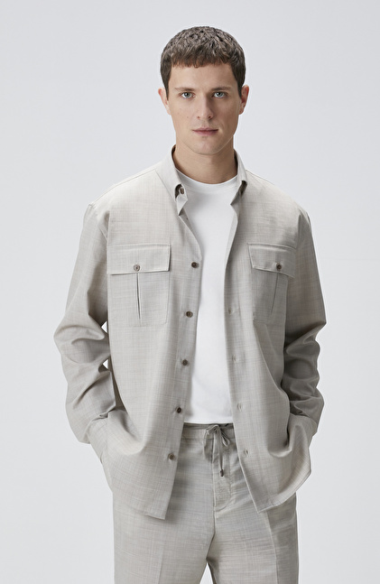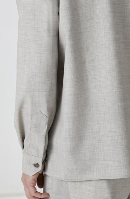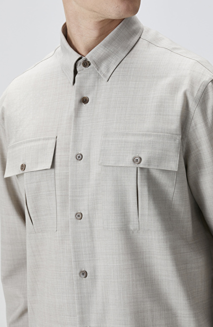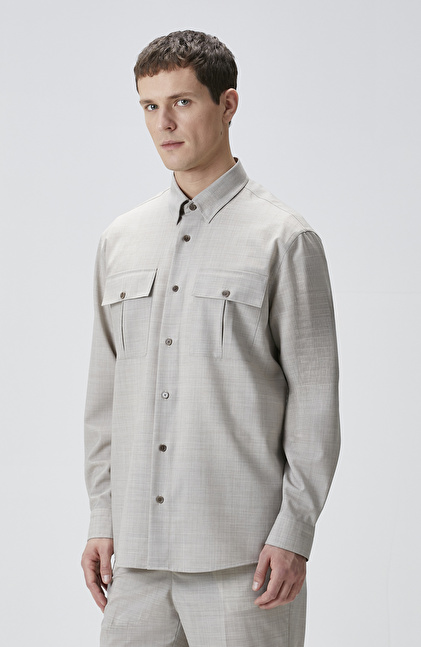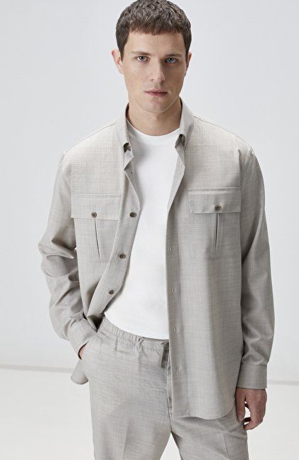 Relaxed Fit; Alttan Britli Yaka; Düğme Kapatmalı; Yün Gömlek; Uzun Kol; Çift Cepli; Limited