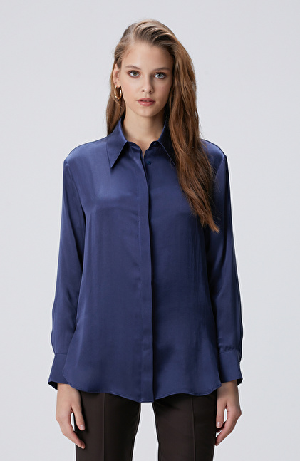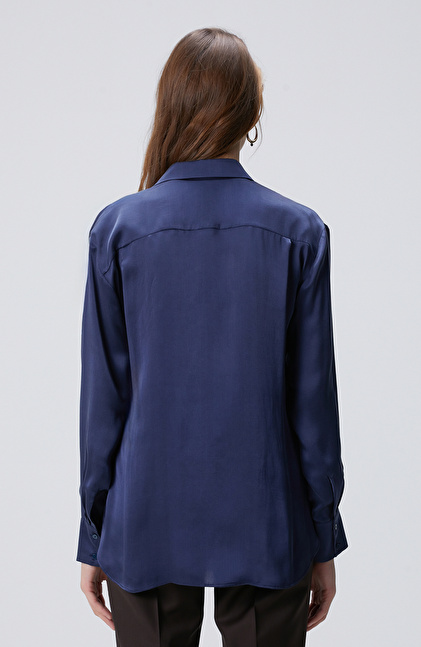 Limited Gece Mavisi İpek Gömlek