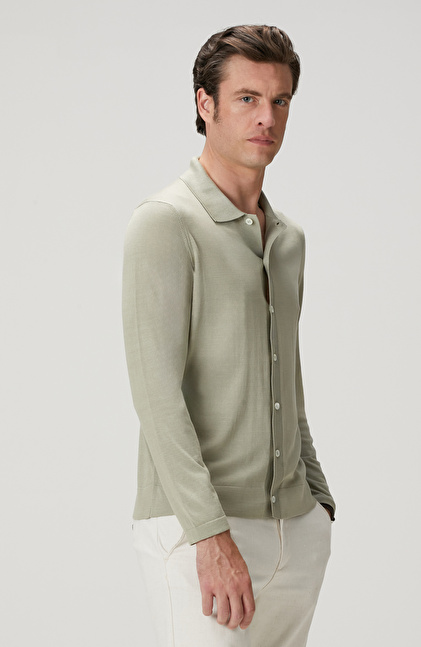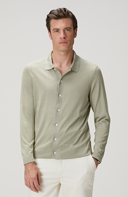 Limited Haki İpek Karışımlı Triko Gömlek