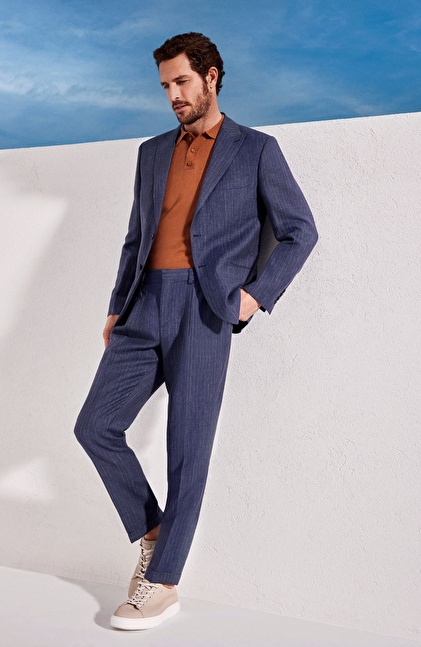Limited Indigo Keten İpek Karışımlı Takım Elbise