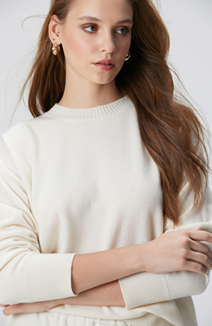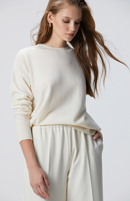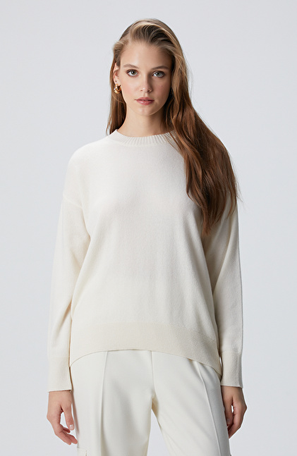 Limited Kırık Beyaz Kaşmir Triko Kazak