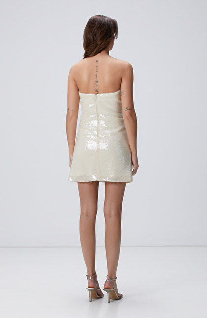 Limited Kırık Beyaz Mini Abiye Elbise