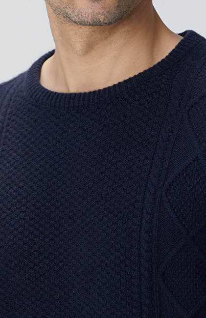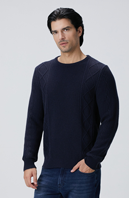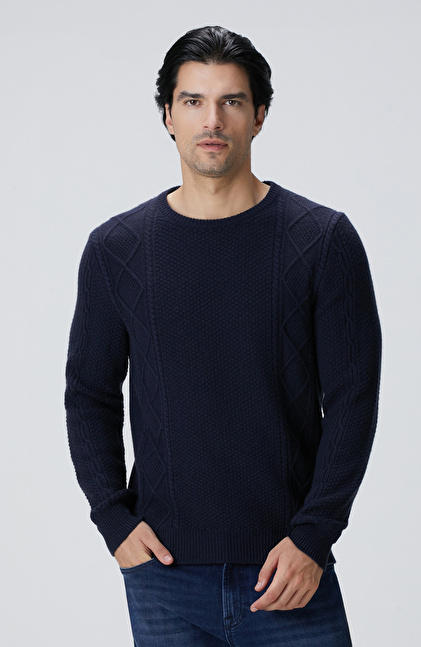 Limited Lacivert Kaşmir Jakarlı Kazak