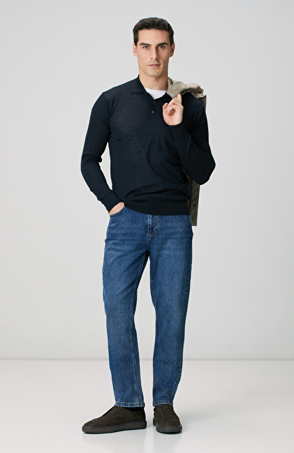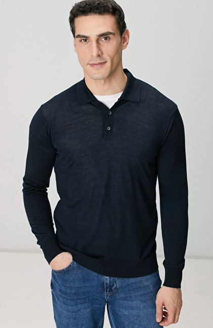 Limited Lacivert Yün Karışımlı Triko Kazak