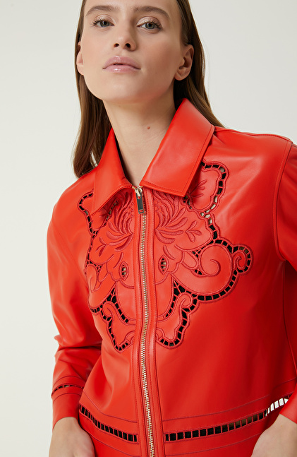 Limited Nar Çiçeği Deri Mont