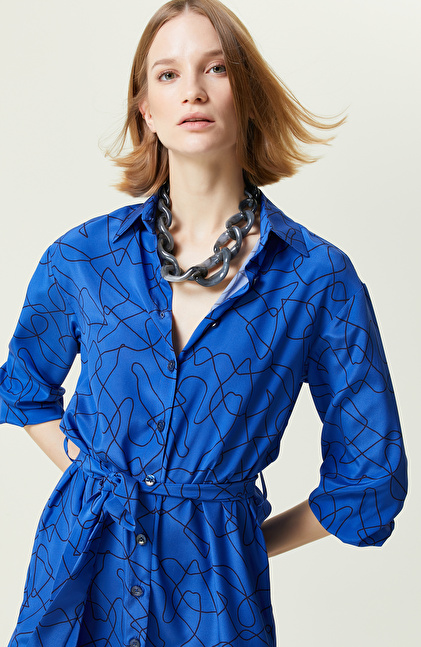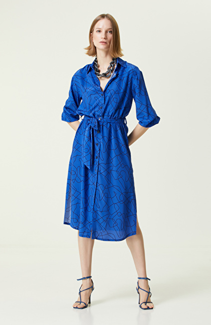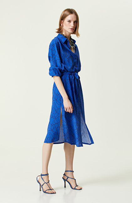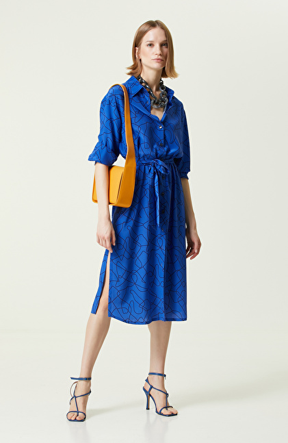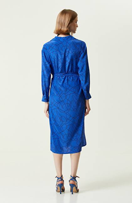 Limited Saks Mavisi Diz Boyu İpek Elbise