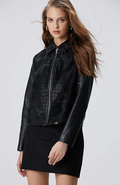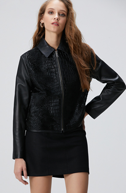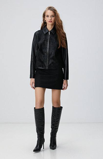 NETWORK LIMITED Limited Siyah Kroko Desenli Deri Mont