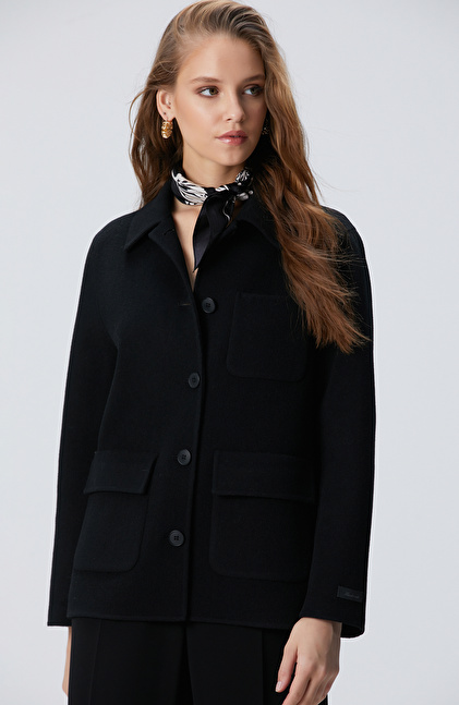 Regular Fit; Gömlek Yaka; Uzun Kol; Kapaklı Cep; Limited Yün Karışımlı Astarsız Ceket