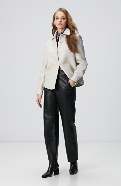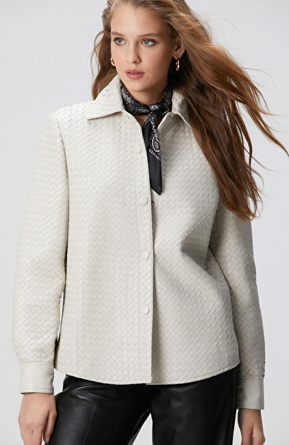Limited Taş Örgü Desenli Deri Gömlek