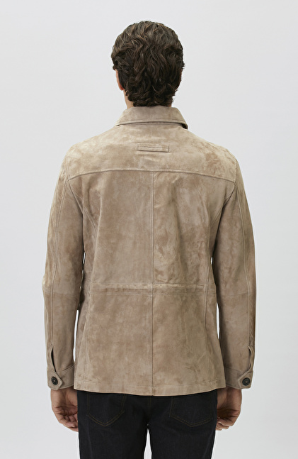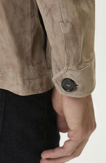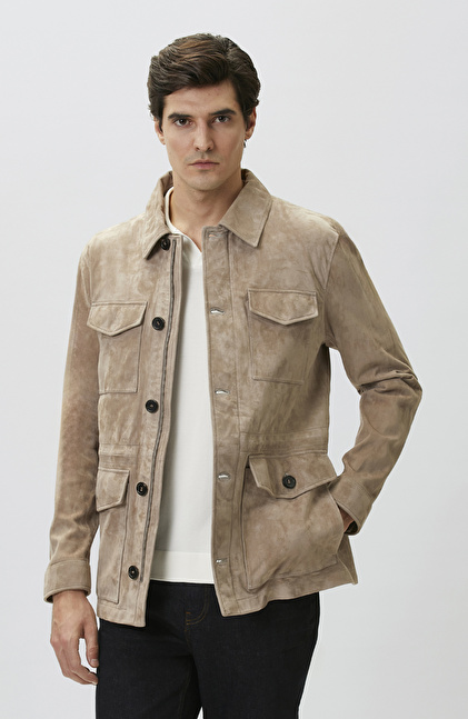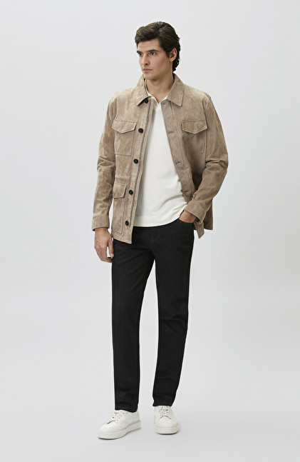 Slim Fit; Gömlek Yaka; Uzun Kol; Süet Deri Coat Ceket; Kapaklı Cepli; Limited