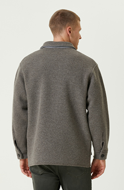 Comfort Fit; Gömlek Yaka; Uzun Kol; Yün Triko Ceket; Düz Renk; Kapaklı Cepli