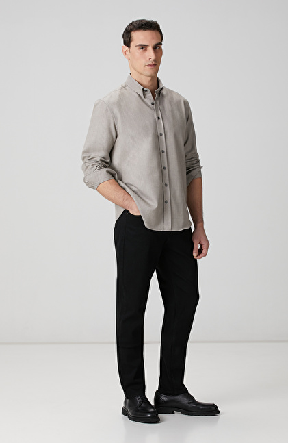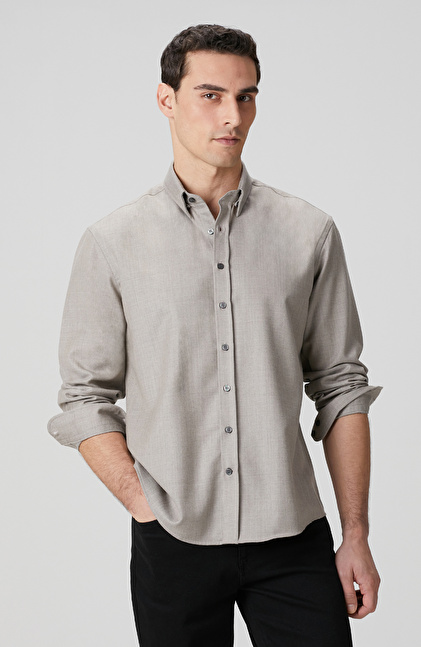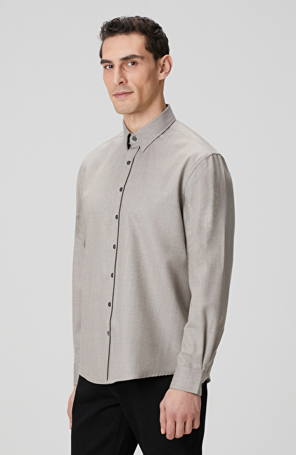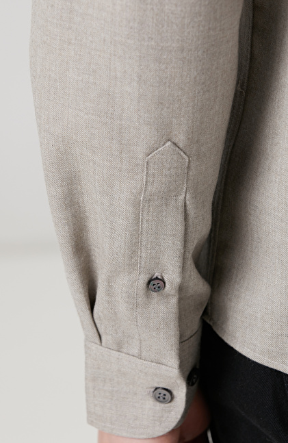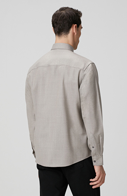 Comfort Fit; Alttan Britli Yaka; Yün Karışımlı Gömlek; Limited