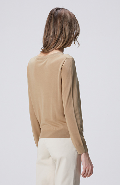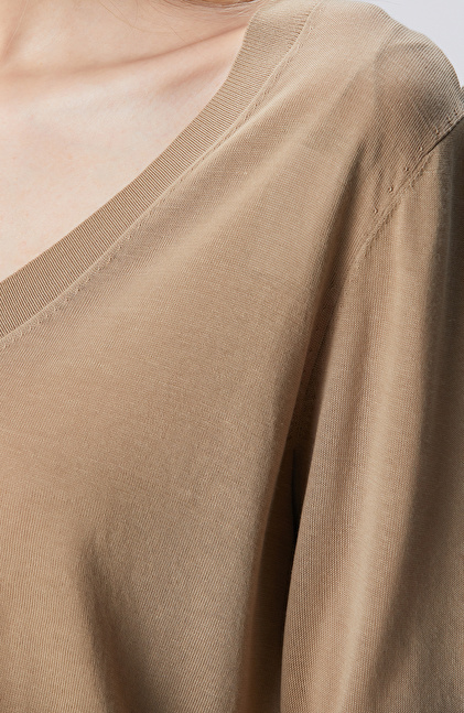 Limited Yağ Yeşili İpek Karışımlı V Yaka Kazak