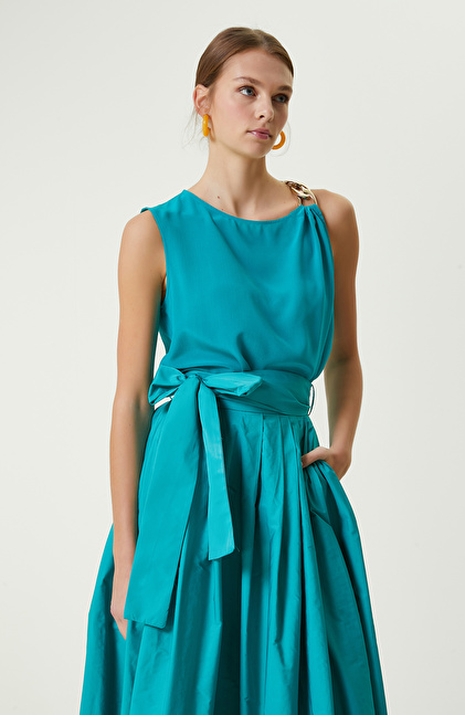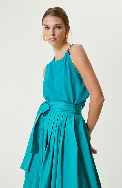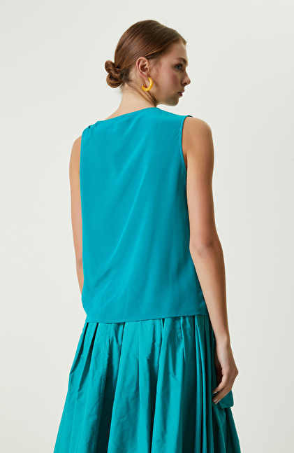 Limited Yeşil Aksesuar Detaylı İpek Bluz