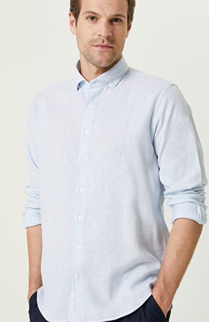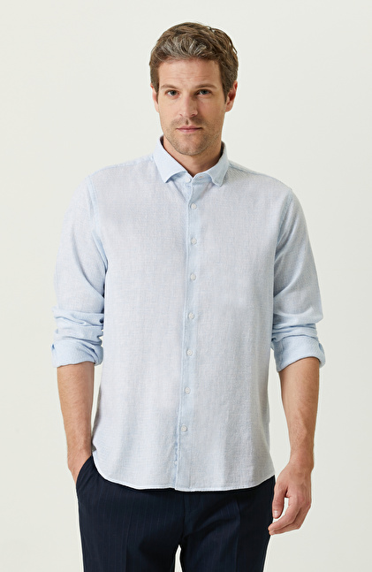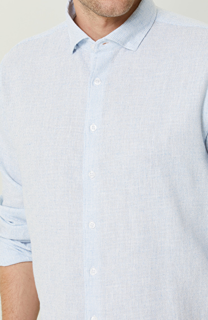 NETWORK Mavi Alttan Britli Yaka Uzun Kollu Gömlek
