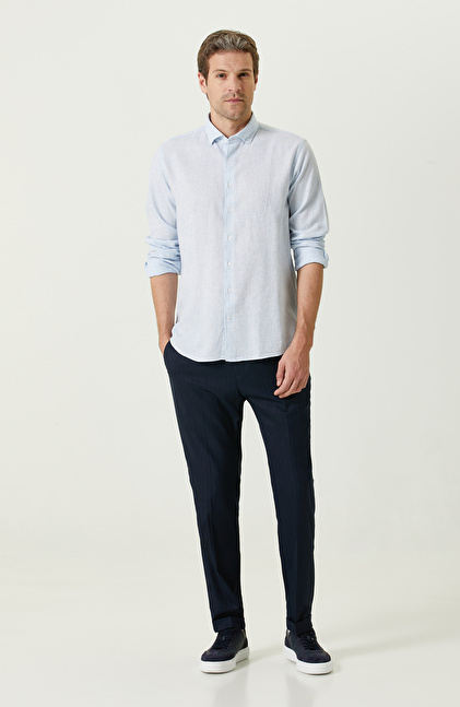 NetWork’ün stil sahibi erkeklere yönelik tasarladığı Mavi Alttan Britli Yaka Uzun Kollu Gömlek, yaz aylarında rahatlığı üst seviyeye taşır. Uzun kol detayı sayesinde mevsim geçişlerinde de ideal bir seçenek haline gelir. Smart Casual serisinin bir parçası olan model, kumaş yapısının kalitesini gün boyu hissettirir. Britli yaka ve desen geçişleri, özel günlerde ve davetlerde kusursuz şıklığın bir göstergesi hâline gelir. Siz de uzun kollu gömlek modelini lacivert rengi kumaş pantolon, aynı renge sahip sneaker, kol saati veya bileklik ile kombinleyebilirsiniz. Böylece günlük ve ofis stilinizi oluşturabilir, uyumlu bir görünüm yakalayabilirsiniz.