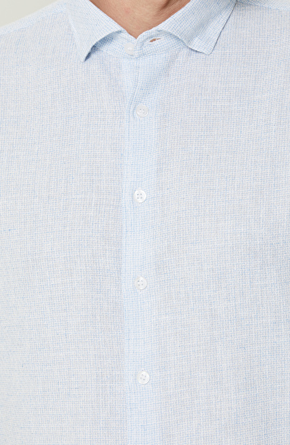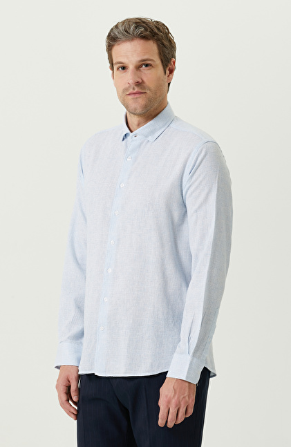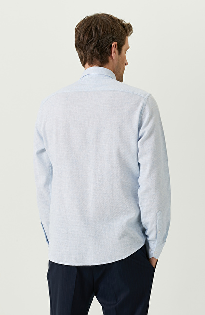 Dokuma Gömlek;Alttan Britli Yaka;Uzun Kol;Comfort Fit;Desenli;Düğmeli