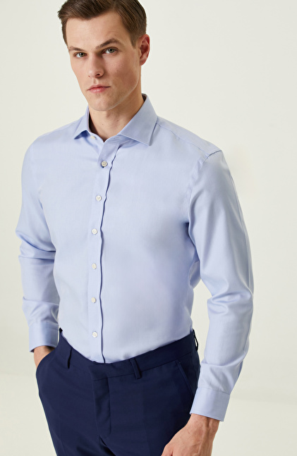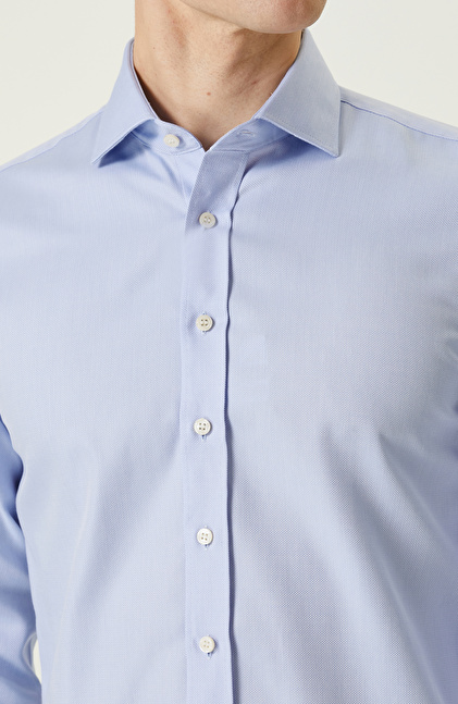Mavi Balıksırtı Desenli Non-Iron Gömlek