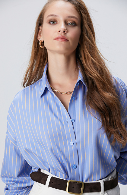 Regular Fit; Gömlek Yaka; Uzun Kol; Cepsiz; Çizgili; Non-Iron Gömlek