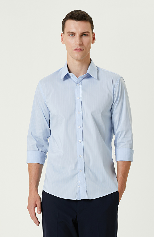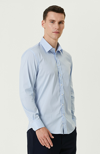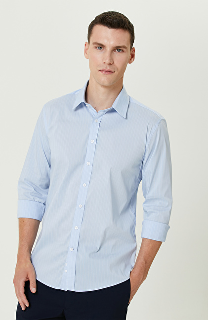 NETWORK Mavi Beyaz Çizgi Desenli Gömlek