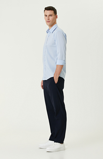 Slim Fit; Gömlek Yaka; Uzun Kol; Keten Gömlek