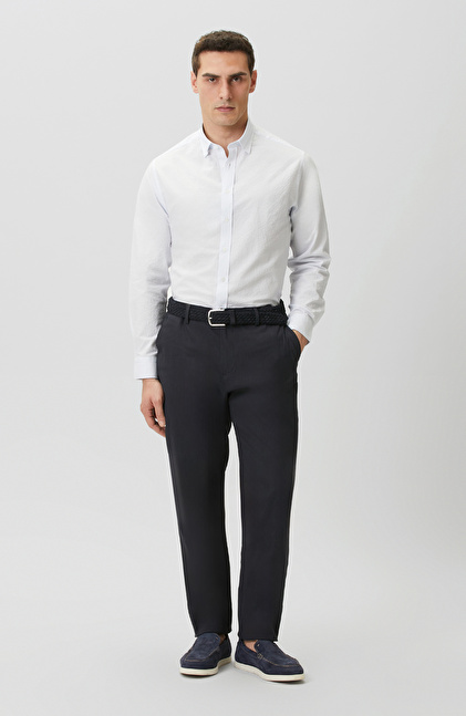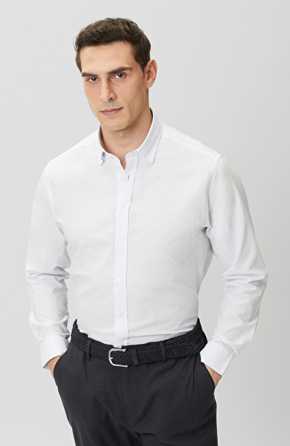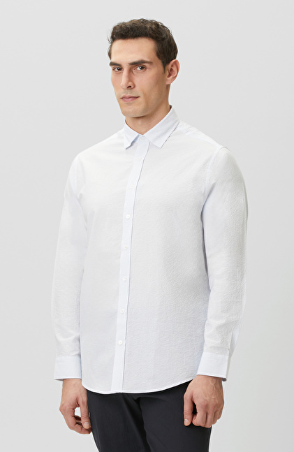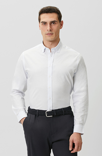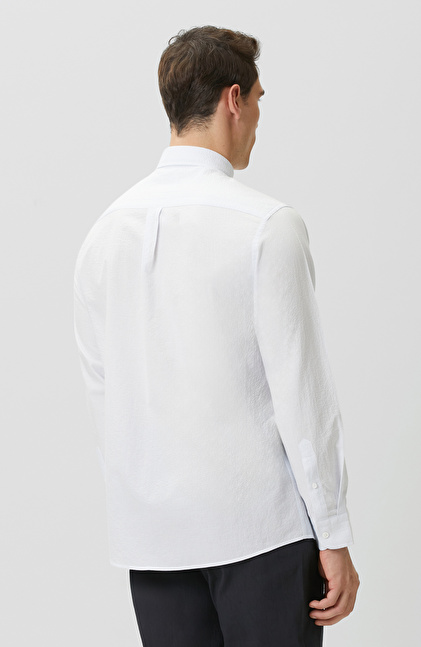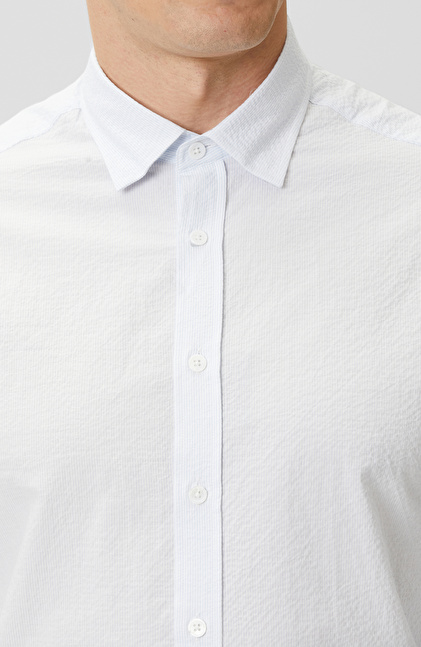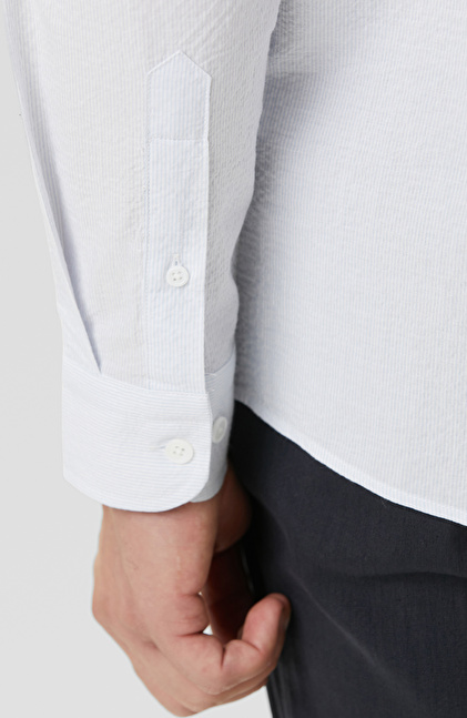 Mavi Beyaz Çizgili Gofreli Comfort Gömlek