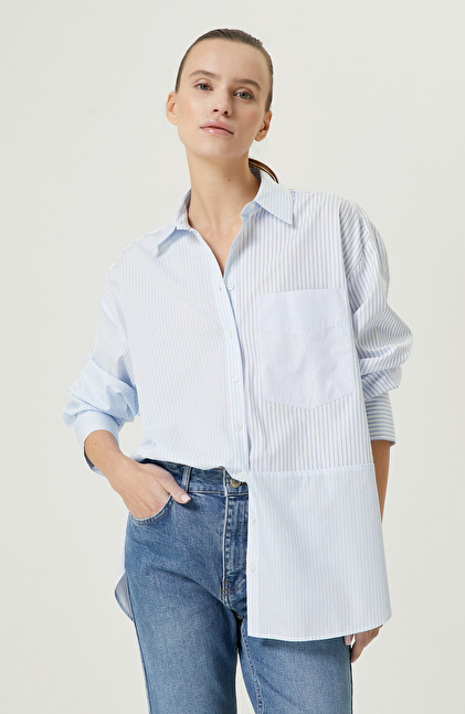 Mavi Beyaz Çizgili Gömlek