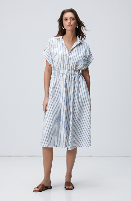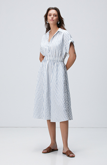 Mavi Beyaz Çizgili Midi Elbise