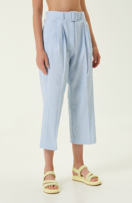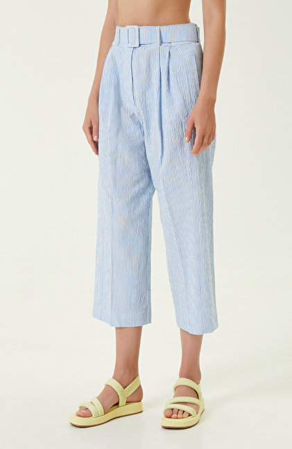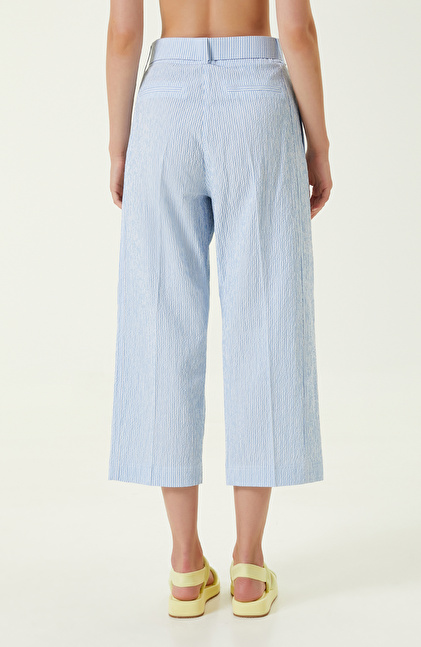 Regular Fit; Yüksek Bel; Çizgili; Geniş Paça; Dokuma Pantolon