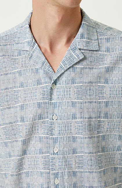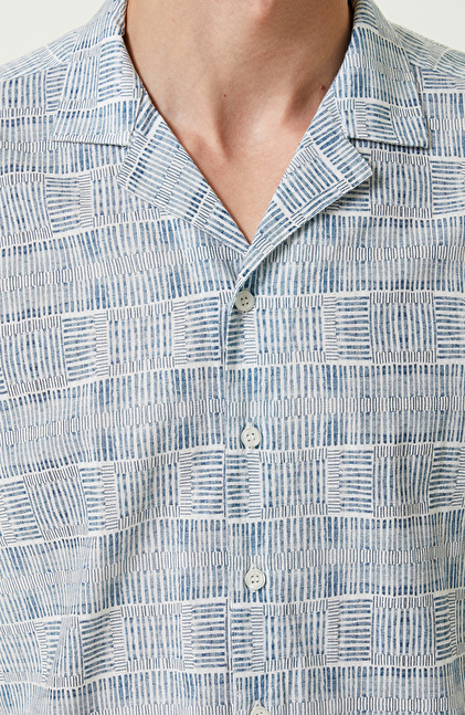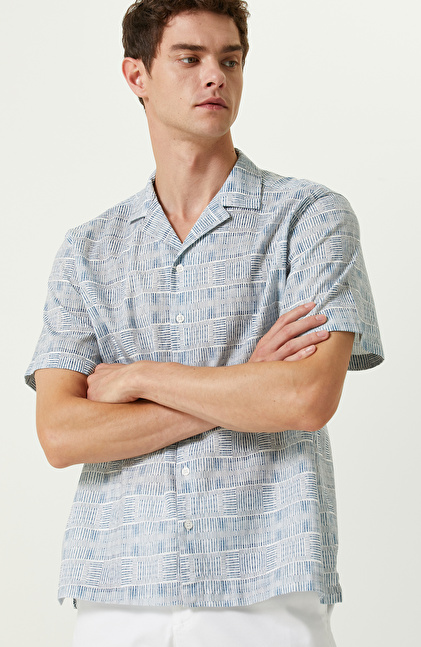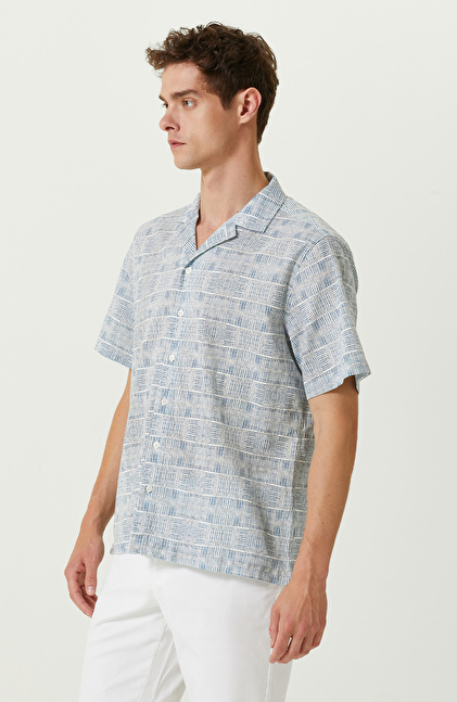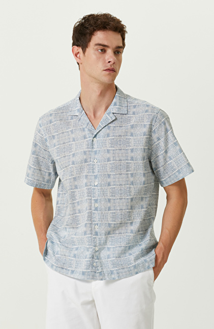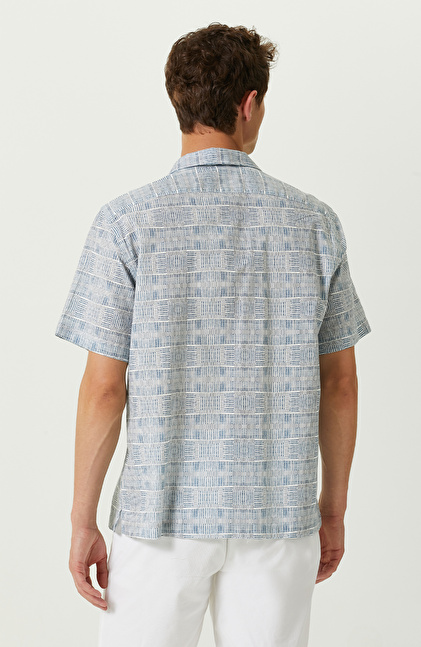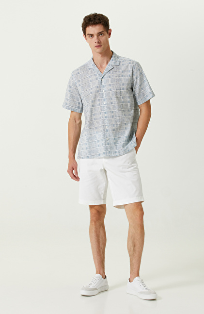 Mavi Beyaz Pamuklu Kısa Kollu Gömlek