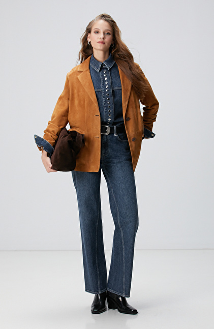 Regular Fit; Gömlek Yaka; Uzun Kol; Cepsiz; Çıtçıt Detaylı Denim Gömlek