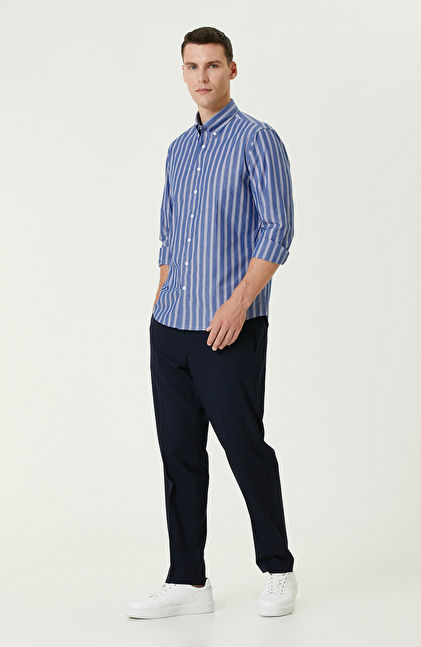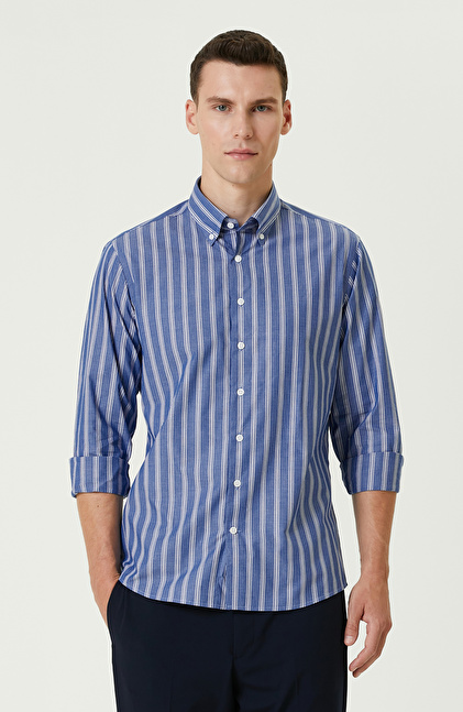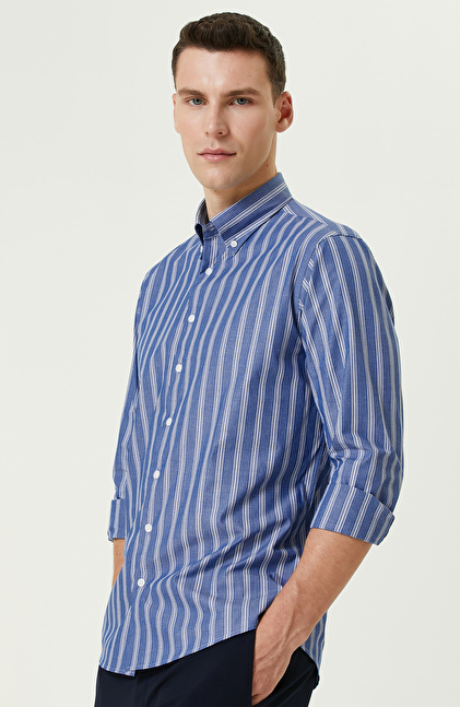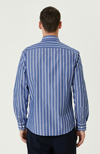 NETWORK Smart Casual Mavi Çizgi Desenli Gömlek