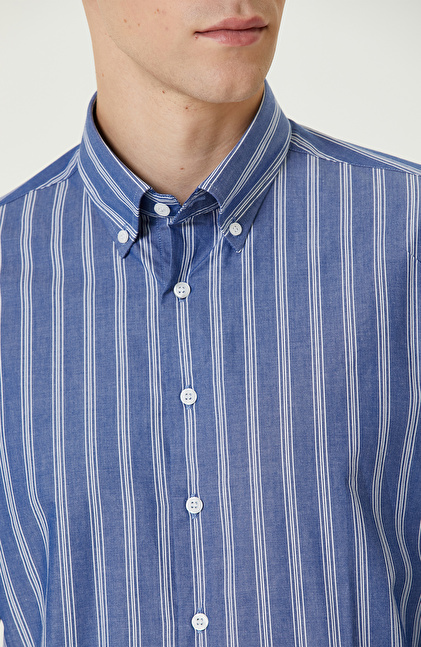 Comfort Fit; Düğmeli Yaka; Çizgi Desenli Gömlek. Uzun Kol; Cepsiz