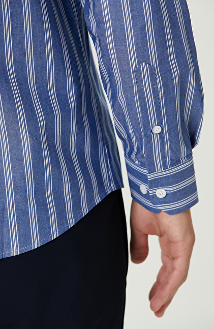 Mavi Çizgi Desenli Gömlek