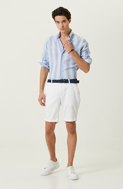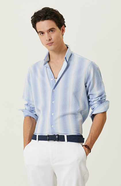 Beach Wear stiliyle 2023 yaz sezonunda dikkat çeken Mavi Çizgili Comfort Fit Gömlek, NetWork’ün Casual görünümünü şık detaylarla bir araya getirir. Sosyal hayatta aktif ve yenilikçi giyinmeye özen gösteren erkekler için iddialı bir seçenektir. Non Iron teknolojisi sayesinde ütüye ihtiyaç duymadan kullanılabilir. Poplin kumaşı hafif ve rahat bir kullanım sunar. Sıcak yaz dönemlerinde pamuklu içeriği sayesinde kullanıcılarına konfor ve çok yönlülük sağlar. Natürel içeriği ve yüksek kalitesiyle stil sahibi erkeklerin kombinlerinin vazgeçilmezi haline gelir. Mavi çizgili gömleği lacivert bir kemer, açık renkli bir şort ve beyaz bir sneakerla beraber kombinleyebilir, iddialı ve cesur bir uyum yakalayabilirsiniz.