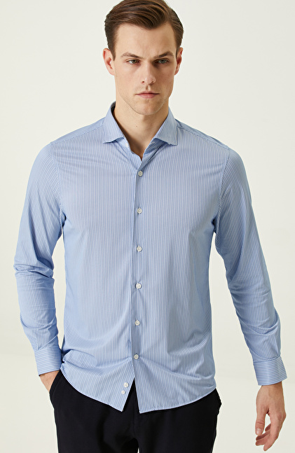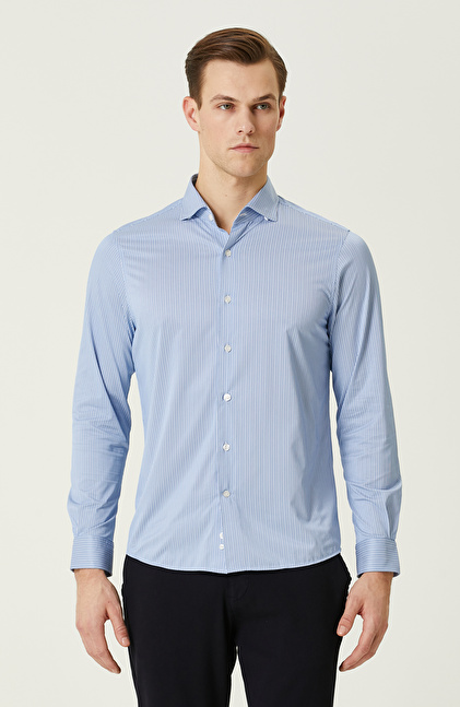 NETWORK Smart Casual Mavi Çizgili Gömlek