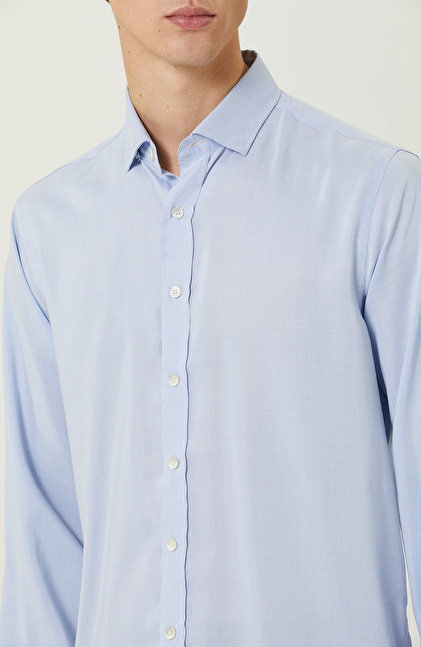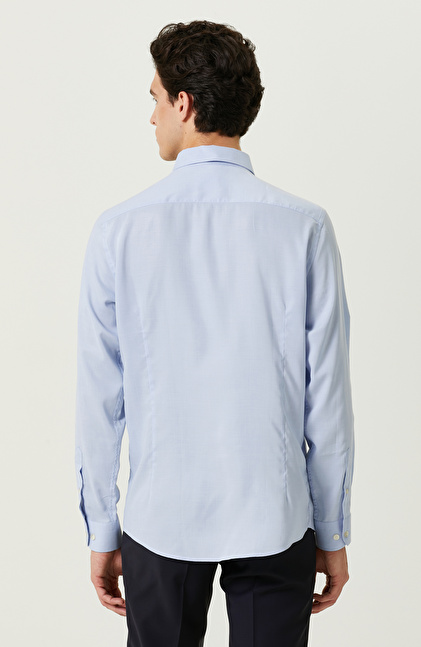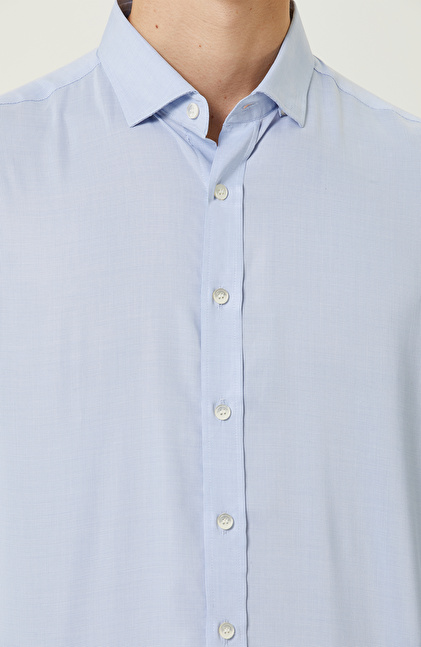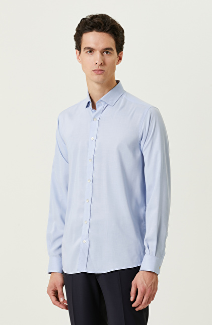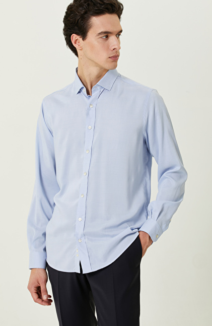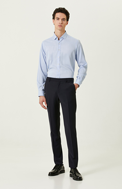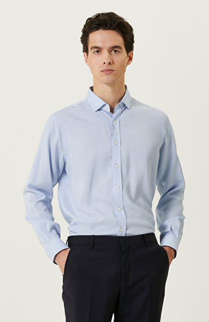 Yüksek duruş ve şık çizgilerin bir araya geldiği mavi desenli gömlek, fonksiyonelliği ile dikkatleri üzerine toplar. Yüksek kaliteli dokuma kumaşıyla şık giyinmeye özen gösteren erkeklere hitap eder. NetWork Smart Casual çizgisindeki ürün, trendleri stiline uyarlamayı sevenlerin beğenisini kazanır. Poplin kumaşlı ve Non Iron teknolojisi sayesinde ütü istemez. Formunu koruyabildiği için sosyal açıdan aktif olan erkeklerin zamanını daha iyi bir şekilde değerlendirmesini mümkün hale getirir. Mavi desenli gömleği lacivert comfort fit kumaş pantolon ve siyah makosen ayakkabılarla birlikte kullanabilir, şehirli görünümünüzü şık bir şekilde yansıtabilirsiniz.