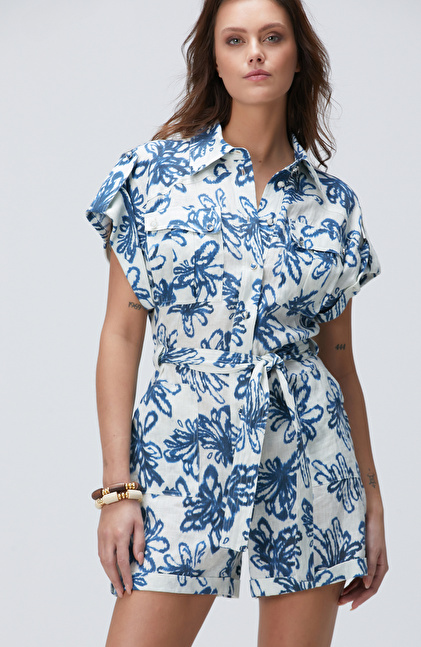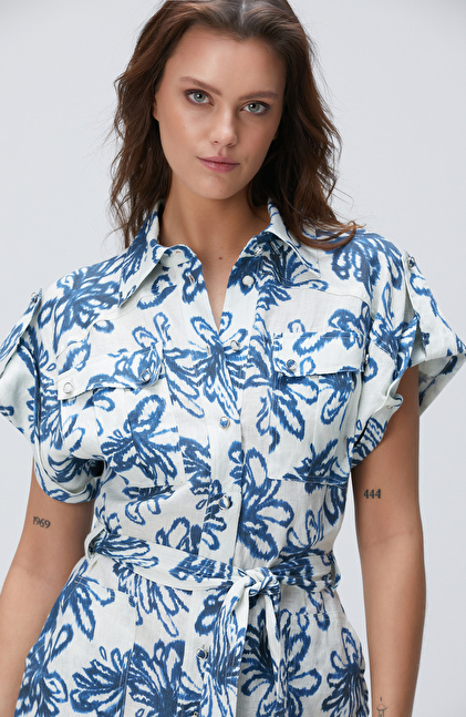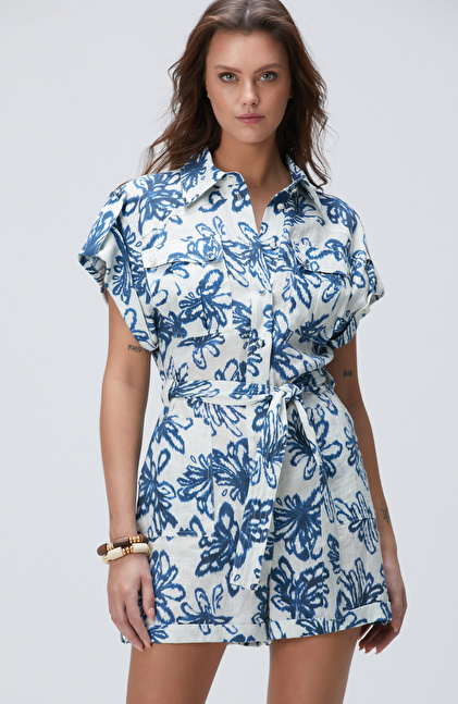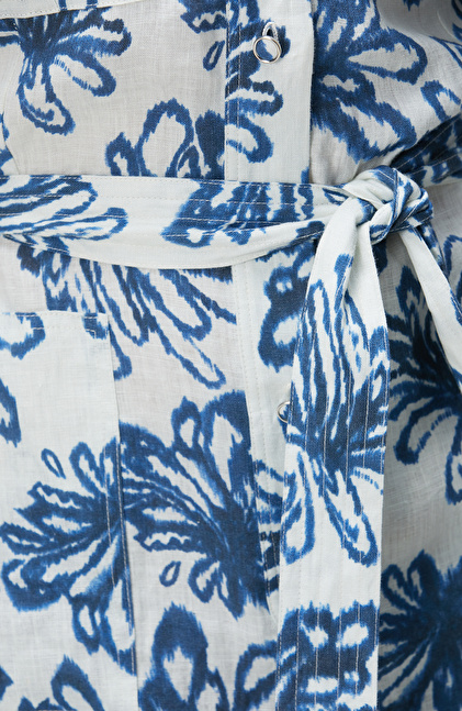 Mavi Desenli Keten Tulum