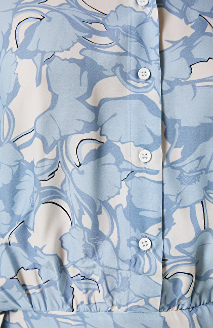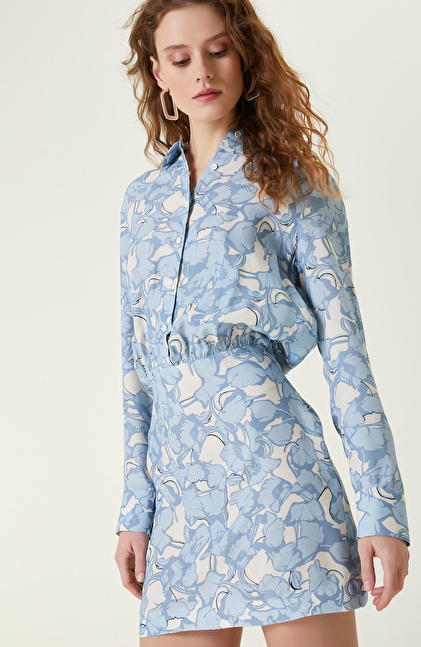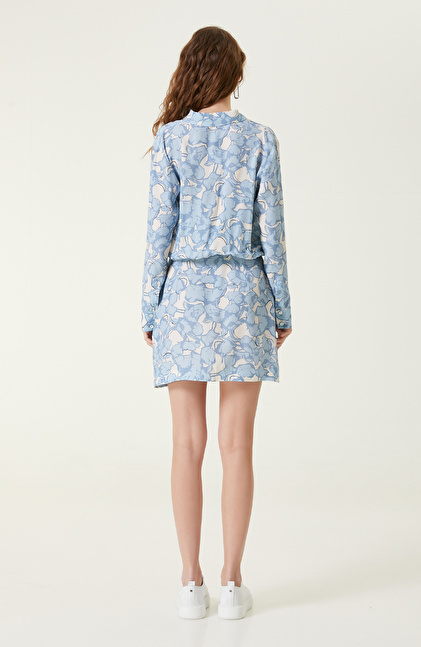 Mavi Desenli Mini Elbise