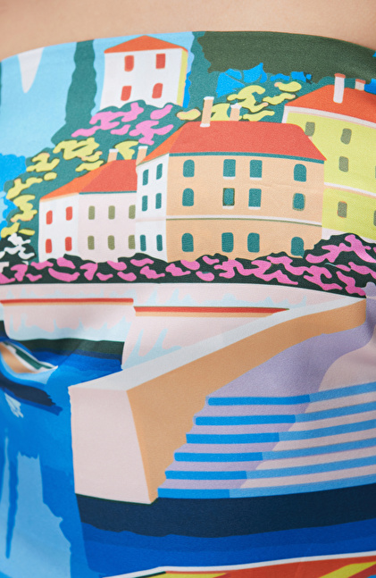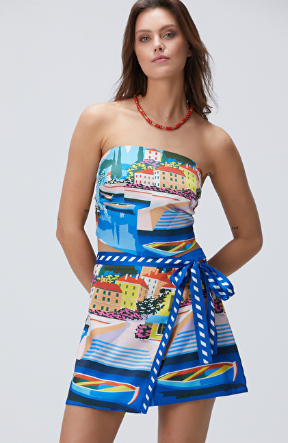 Mavi Desenli Plaj Bluz