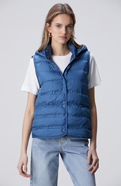 Mavi Dik Yaka Casual Yelek