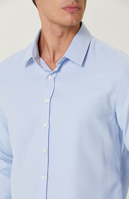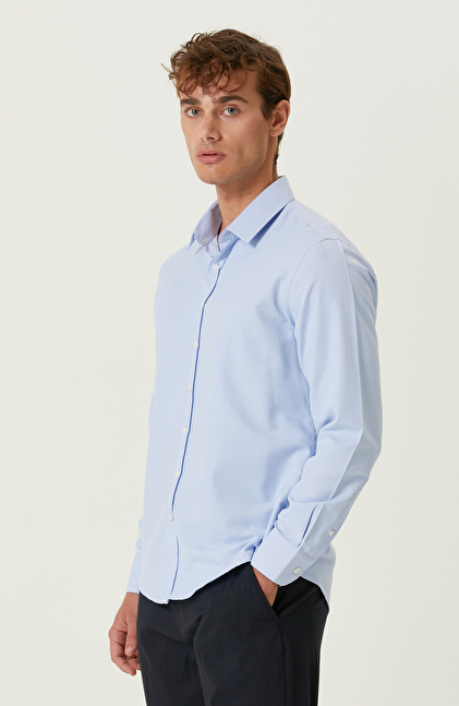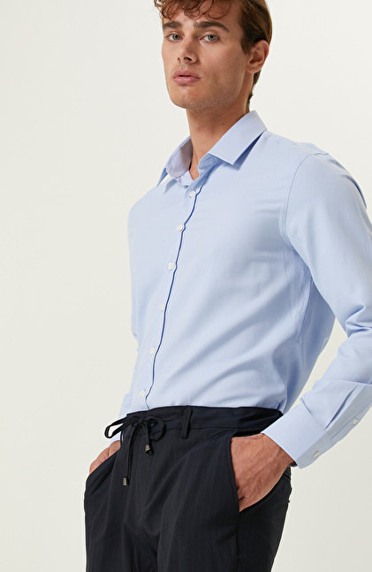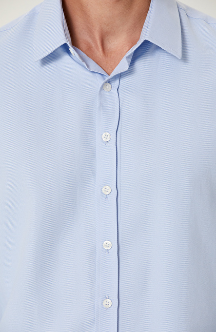 Mavi Diyagonel Cotton Gömlek