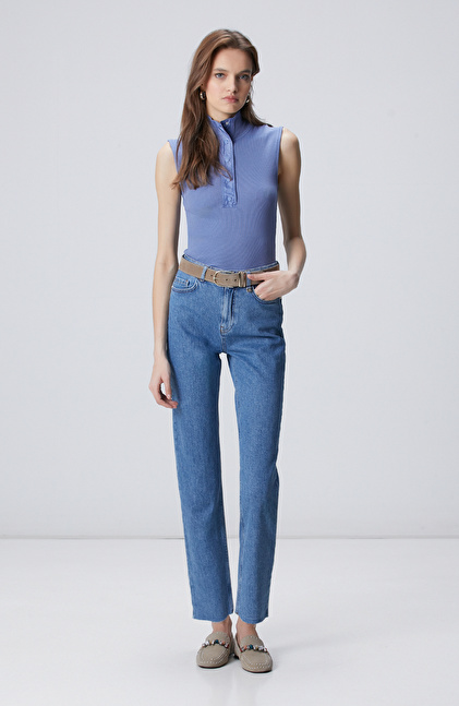 Mavi Dokuma Garni Detaylı Modal Mix T-shirt