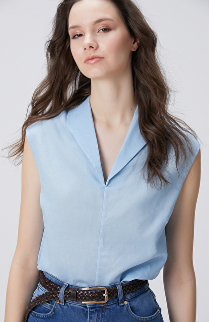 Blue Linen Blouse