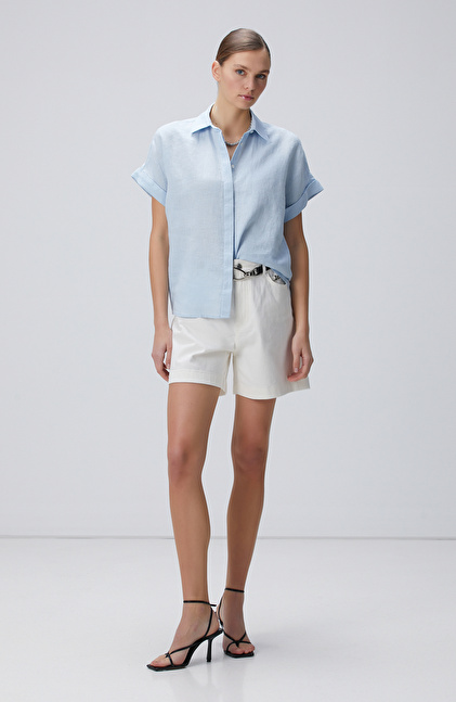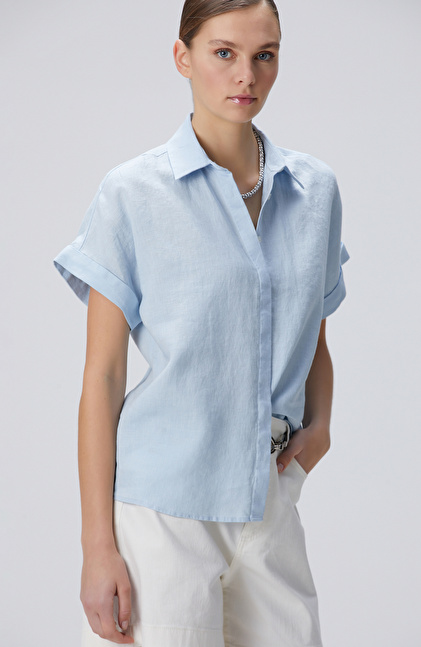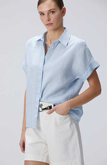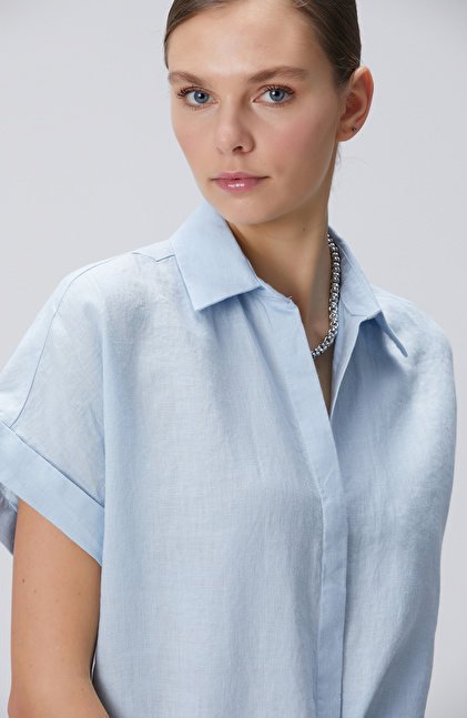 Mavi Keten Gömlek