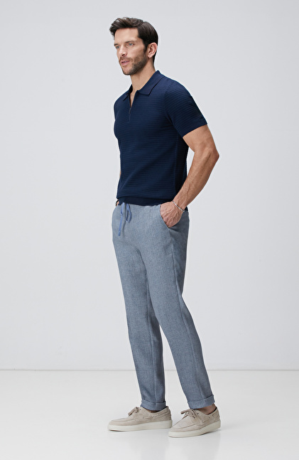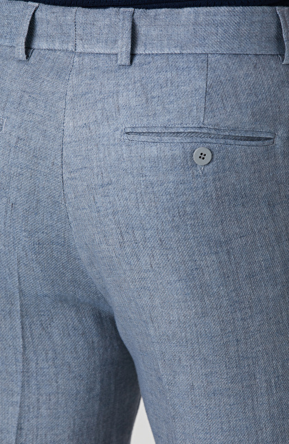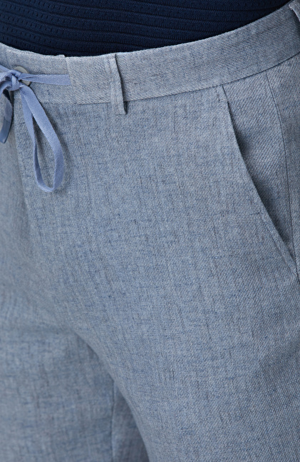 Mavi Keten Karışımlı Pantolon