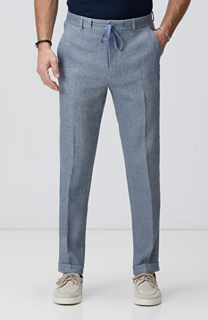 NETWORK Smart Casual Mavi Keten Karışımlı Pantolon