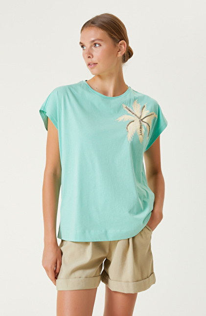 NETWORK Casual Mint Desenli T-shirt