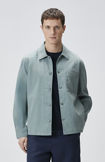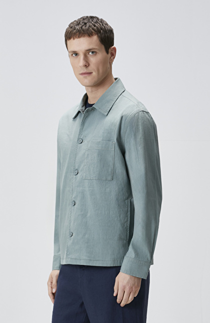 Mint Keten Karışımlı Dış Gömlek